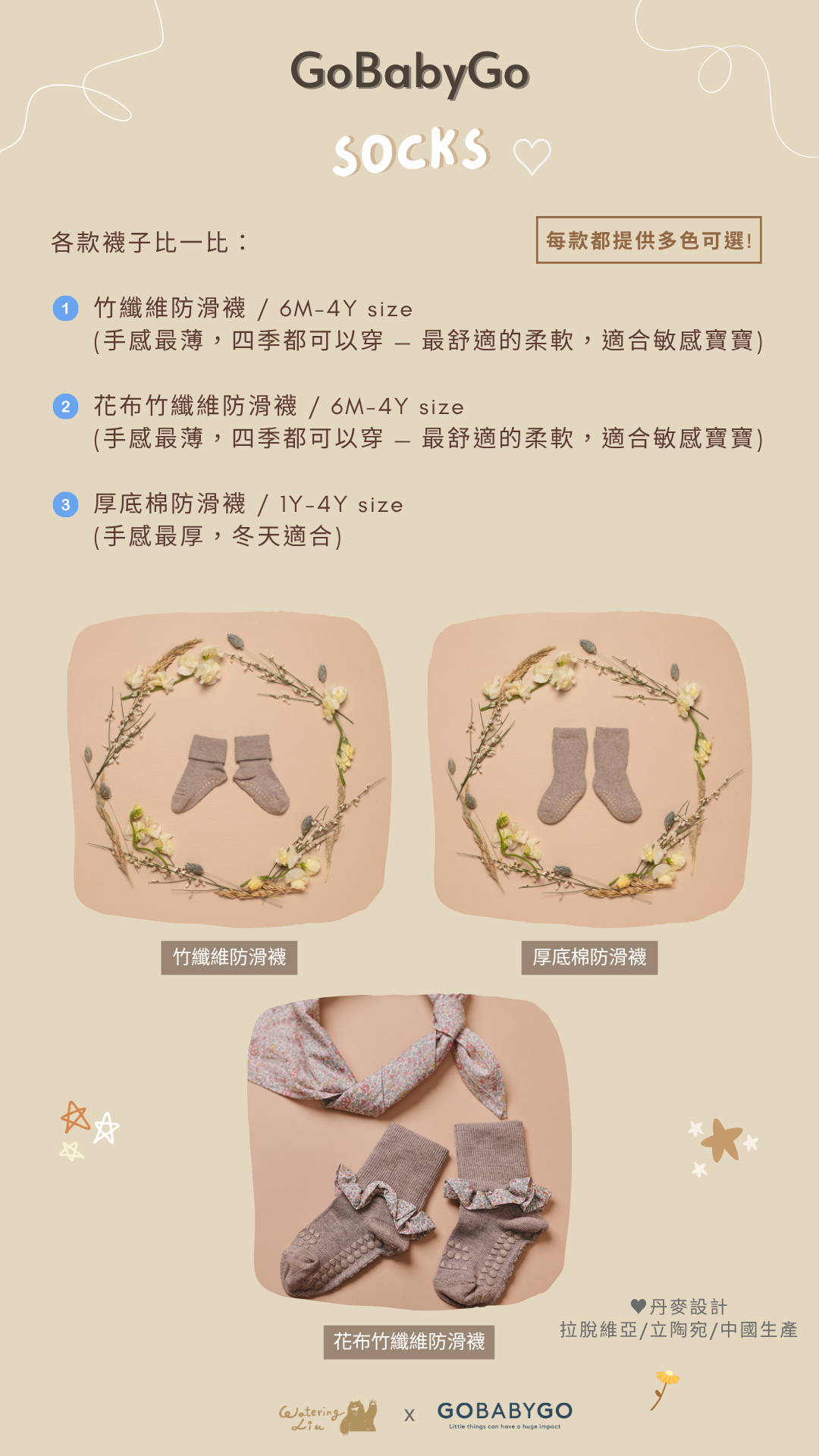 每一款防滑襪在腳底設計有橡膠防滑點及 GoBabyGo 品牌獨特的可愛防滑文字,可以最佳地刺激平衡,並為孩子提供額外的穩定性,有助於提高他們集中注意力和發展與其他孩子社交的能力。
