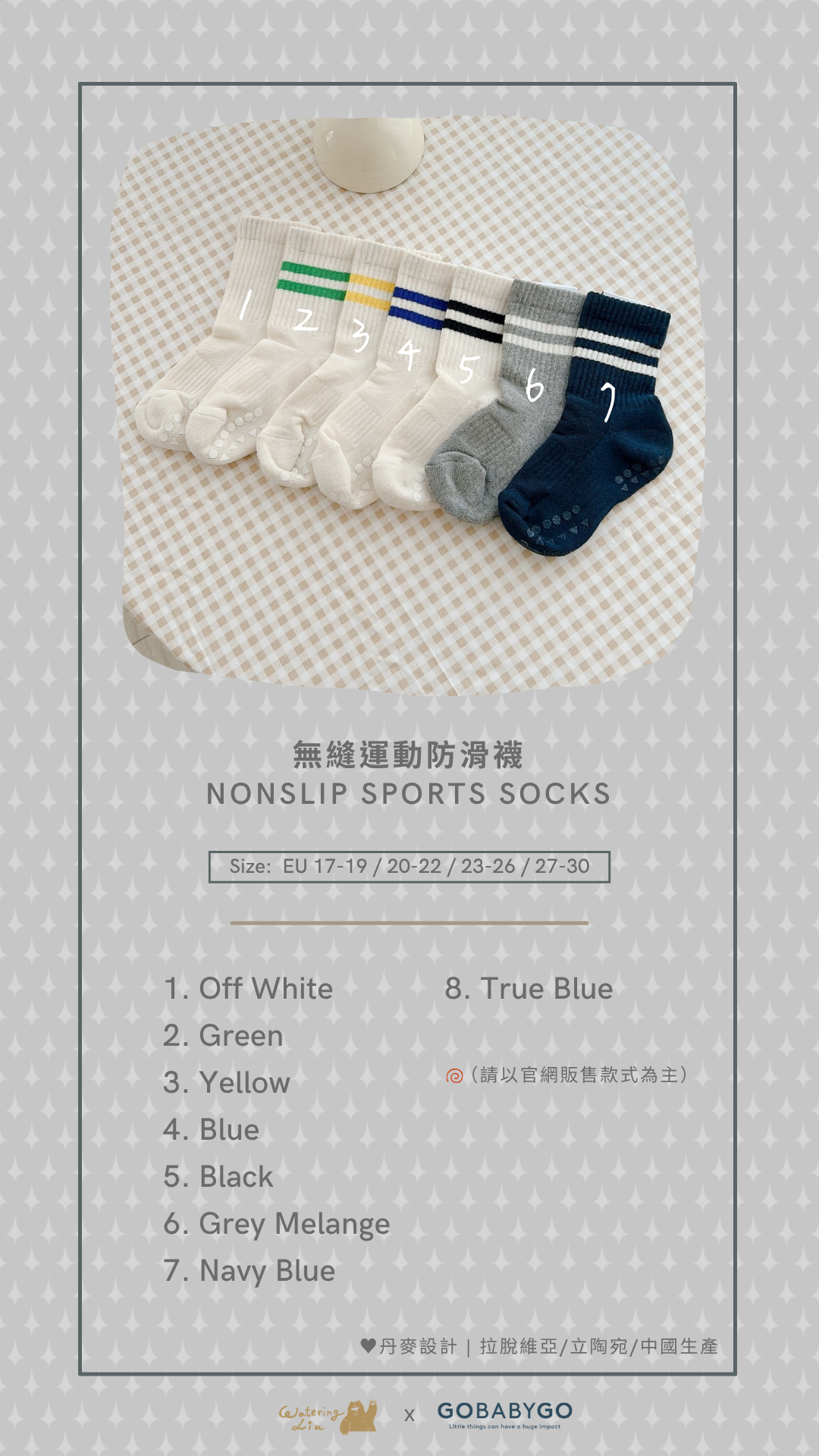 GoBabyGo 純棉運動防滑襪,使用高品質的優質透氣棉質材料製成,其防滑襪底以及含有橡膠防滑點的設計,確保孩子在開始行走或跑跳時不會輕易在光滑的表面上滑倒,更能夠與不同的服裝搭配使用,這種特別設計的防滑襪底提供更好的平衡性及增強性能,是專為所有運動和活動過程中可提供最大舒適度和安全性所設計而成的防滑襪。