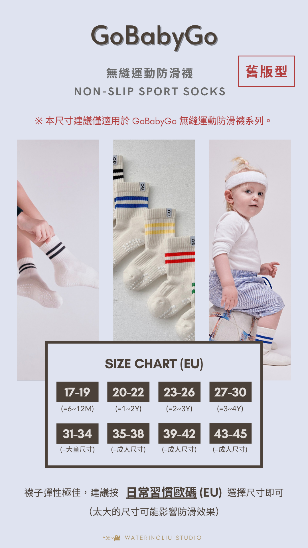 GoBabyGo 純棉運動防滑襪,使用高品質的優質透氣棉質材料製成,其防滑襪底以及含有橡膠防滑點的設計,確保孩子在開始行走或跑跳時不會輕易在光滑的表面上滑倒,更能夠與不同的服裝搭配使用,這種特別設計的防滑襪底提供更好的平衡性及增強性能,是專為所有運動和活動過程中可提供最大舒適度和安全性所設計而成的防滑襪。