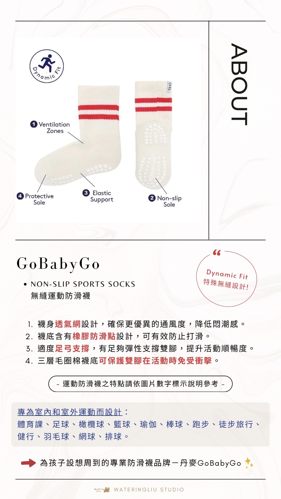 通過減少滑倒的可能性,尤其是在光滑或濕滑的表面上,GoBabyGo 防滑襪創造了更安全的運動及活動環境。