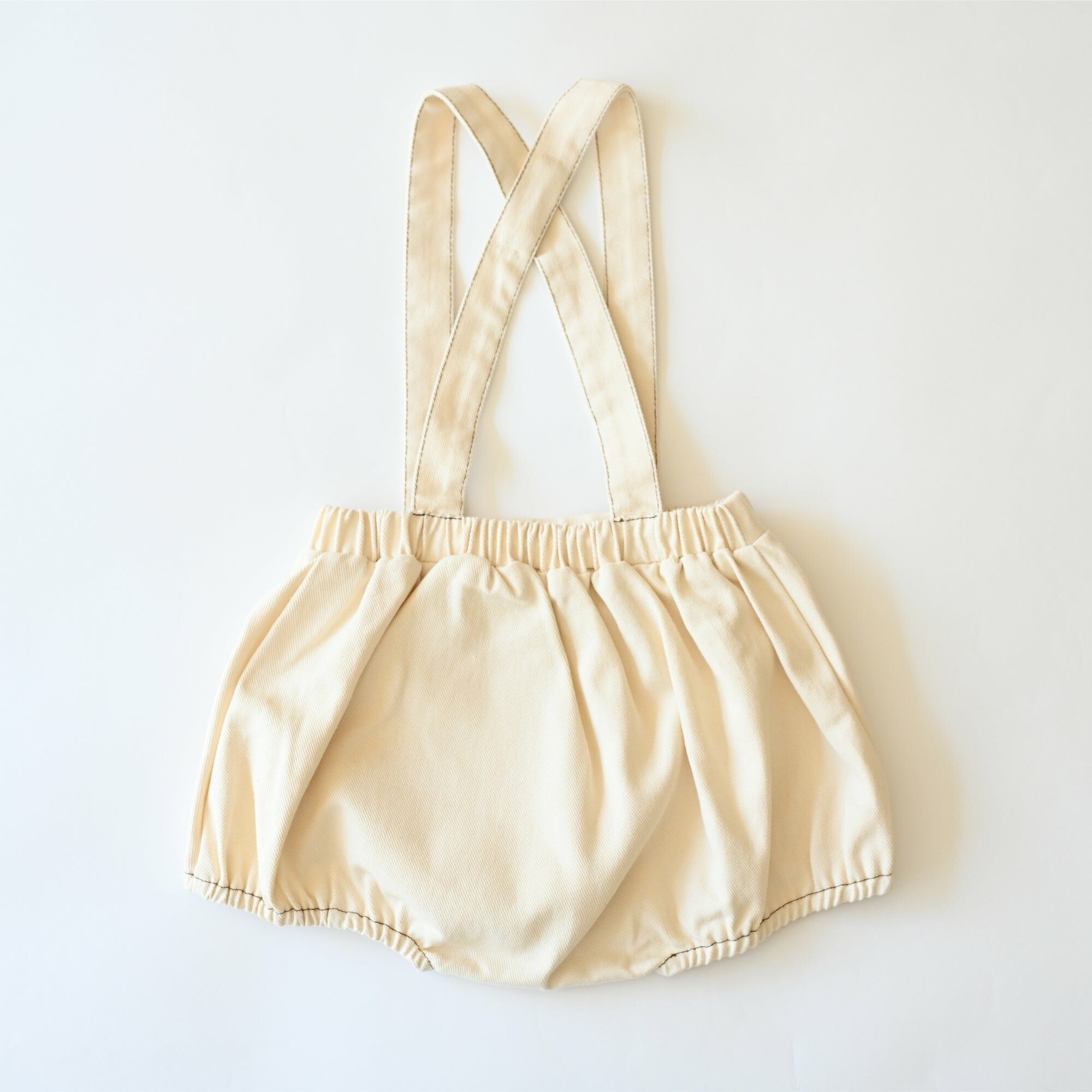 The loose design makes it easy to move around, and the plump silhouette covers diapers cutely.