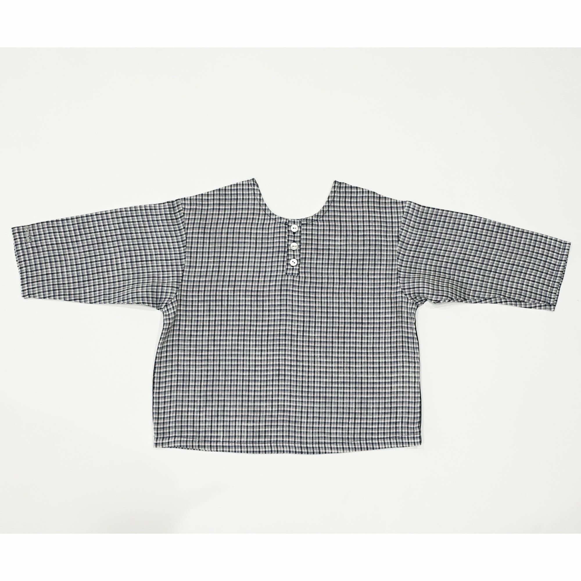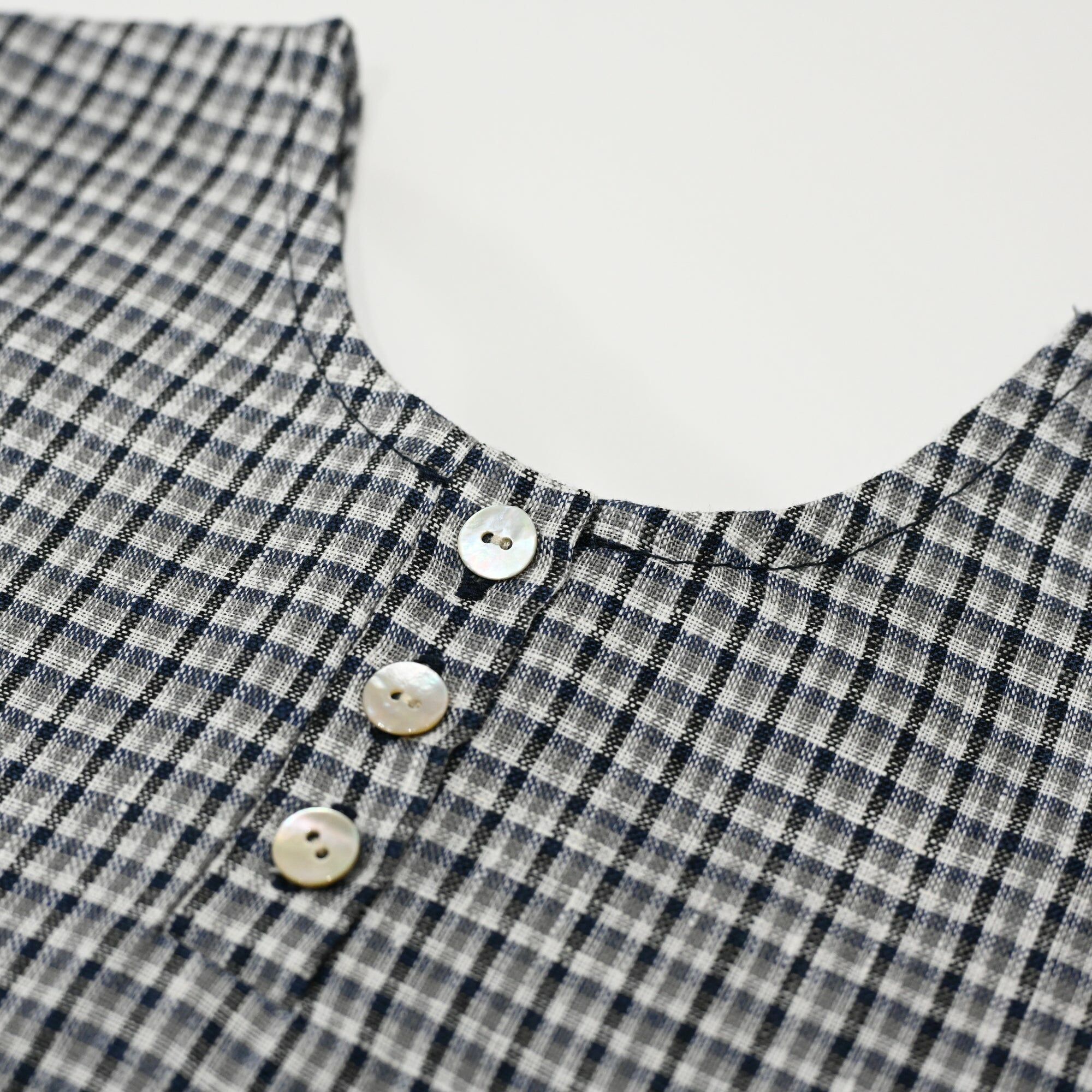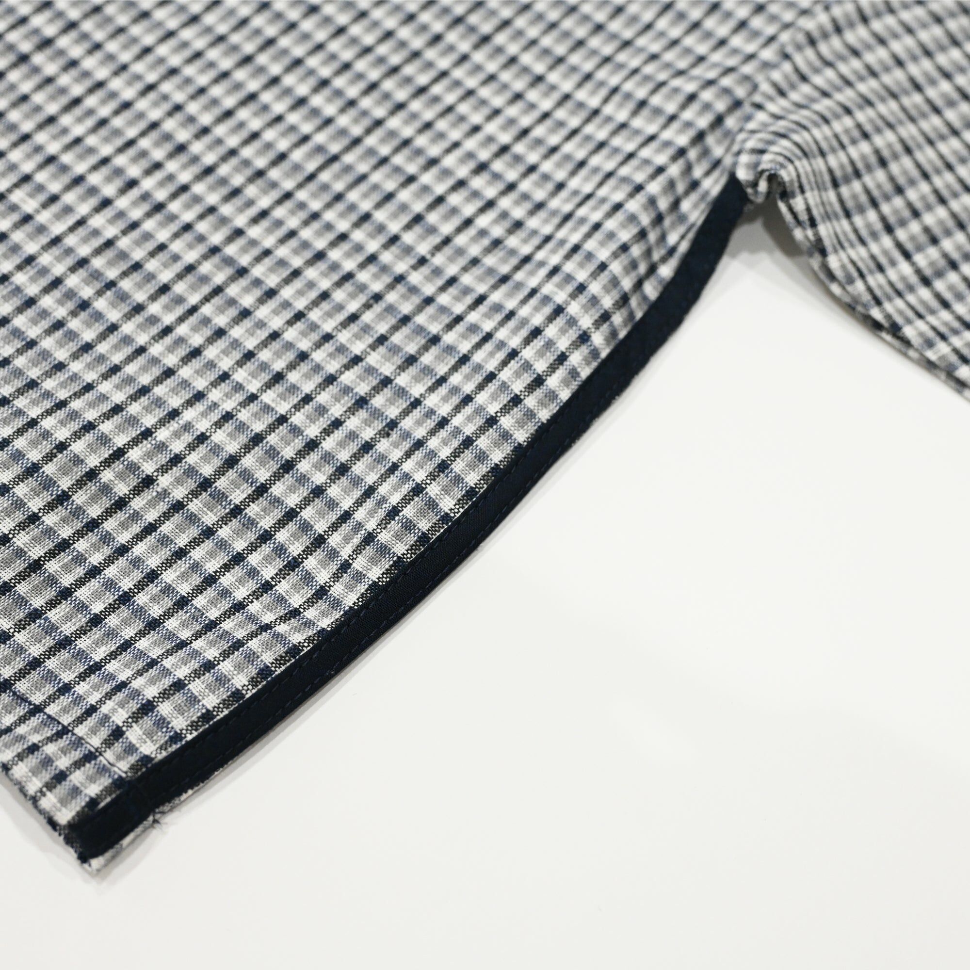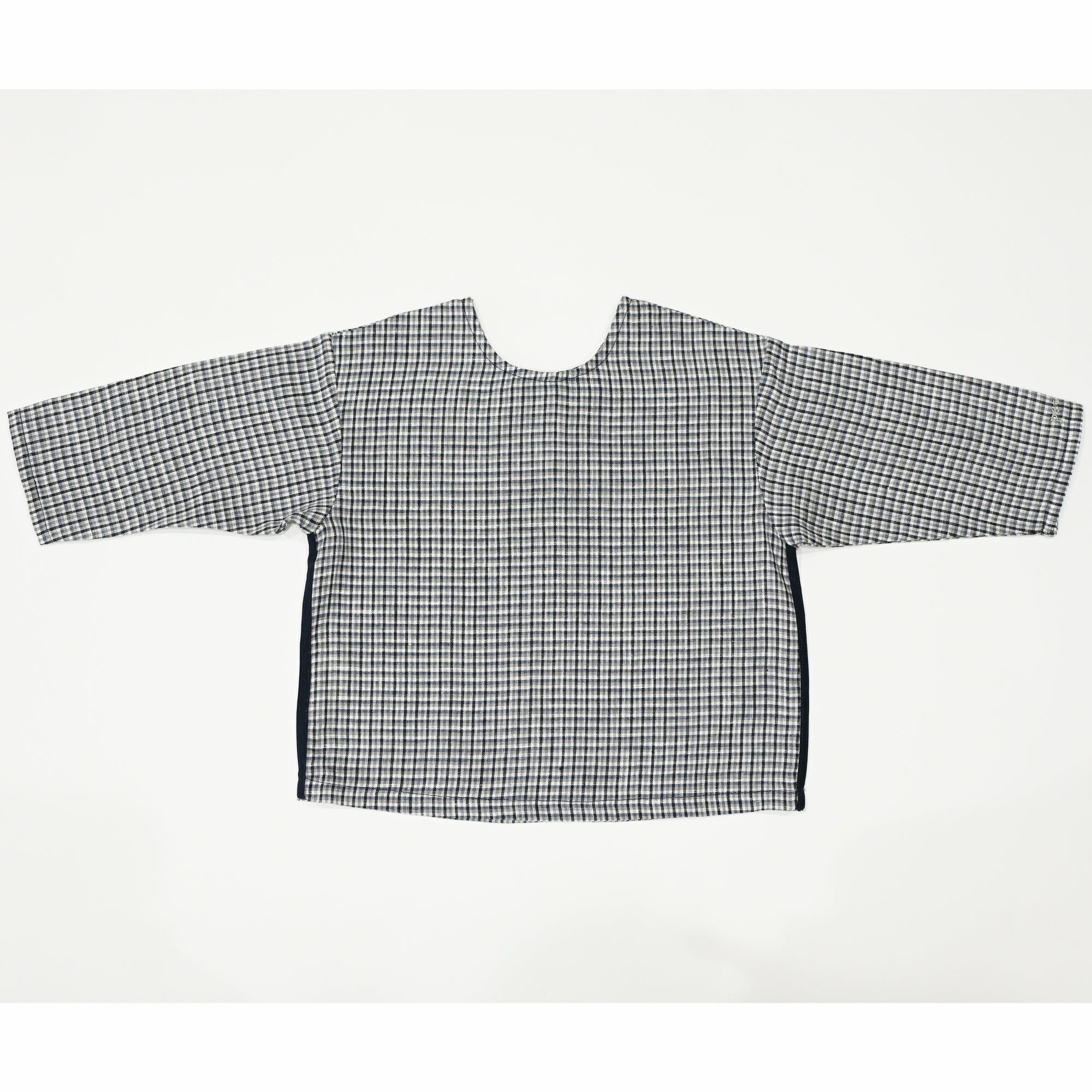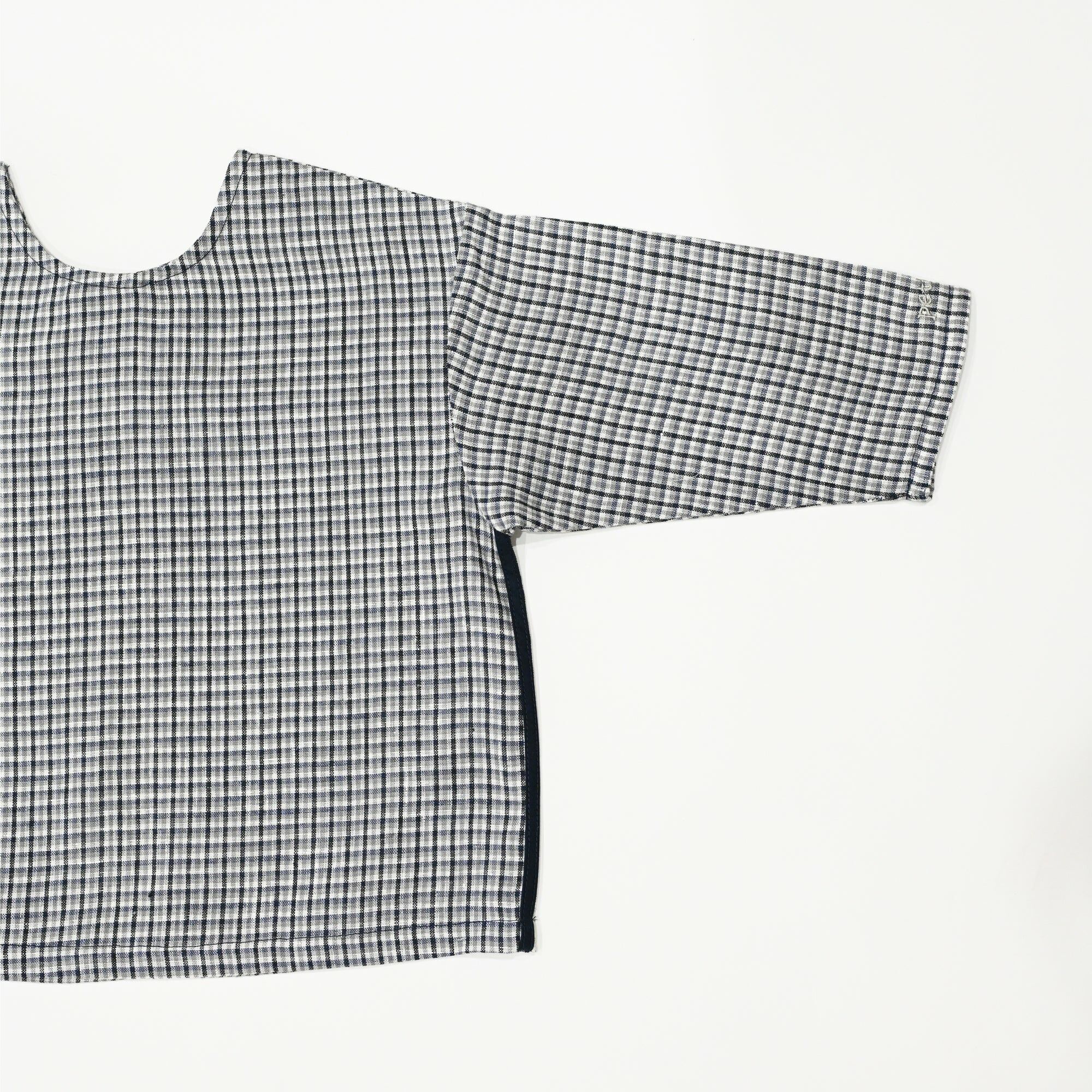 With a refreshing navy plaid pattern, it has a 2-way design that can be worn with either the front or the back facing forward.