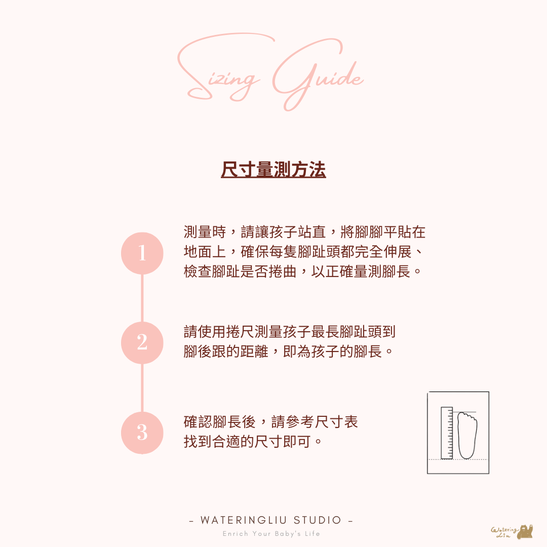 *請見附圖之鞋款顏色、尺寸說明及量測方法。