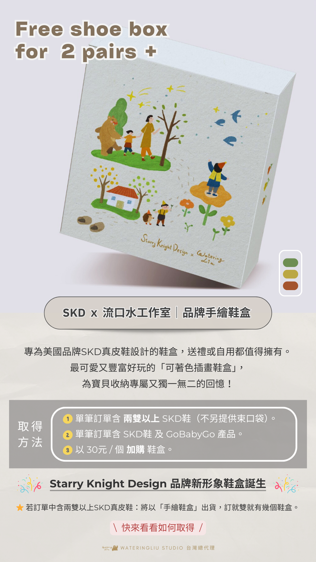 ★ 若訂單中含兩雙以上SKD真皮鞋:將以「手繪鞋盒」出貨,無提供束口收納袋。